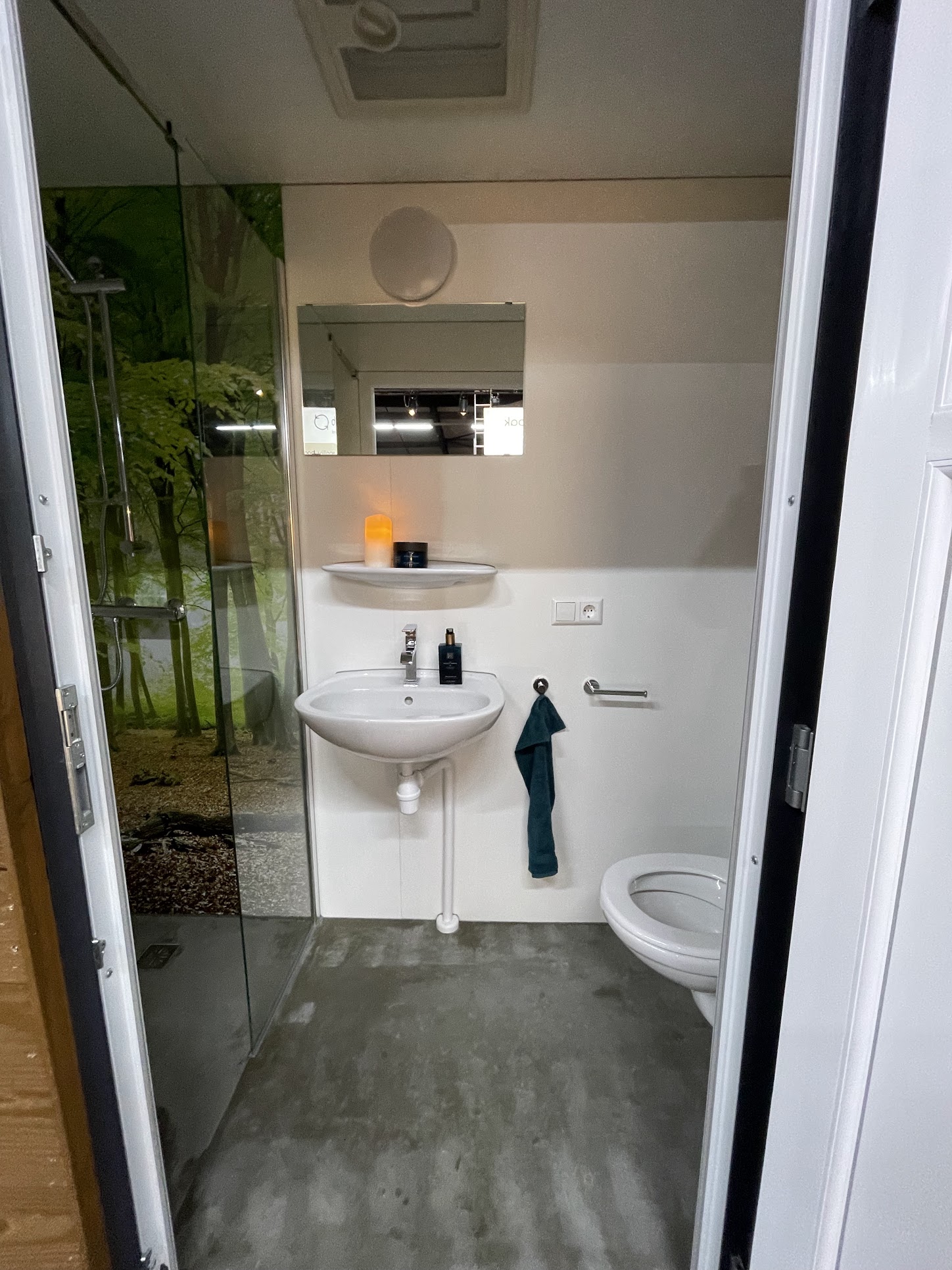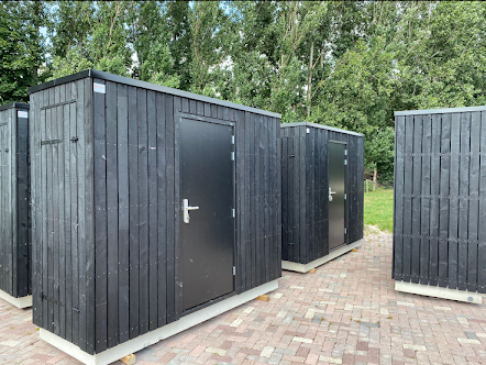 De Compact is een campingbadkamer voor bij een glampingaccommodatie, een caravan of tentplek. Door haar slimme indeling beschikt deze badkamer over een douche, toilet en wastafel.